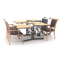 Adaptive tables purchased for the dining room guarantees that Residents of all levels of mobility have dignity and a positive experience when dining.
